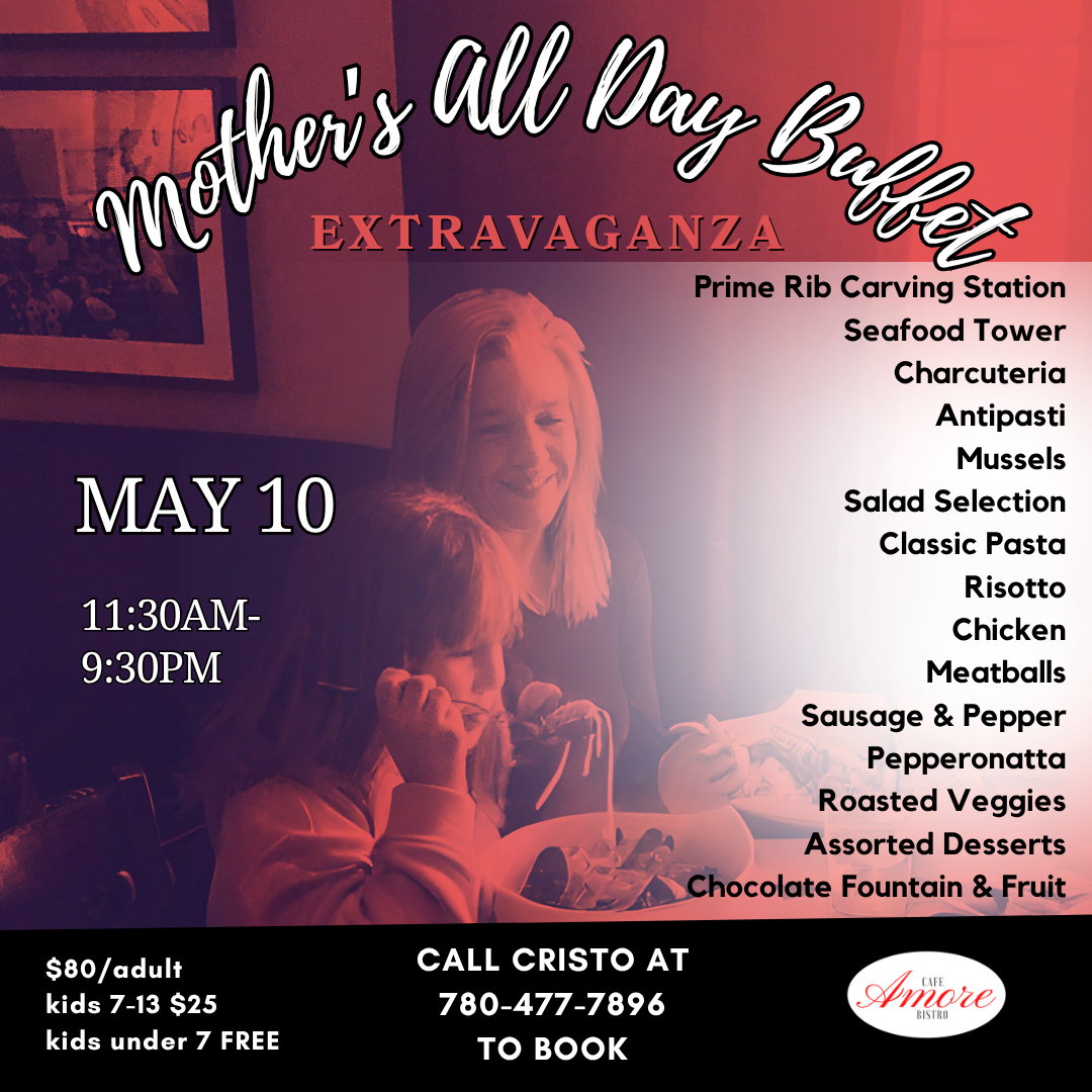For whatever occasion please book your event or party with us and create a designed menu at your budget.. our establishment will accommodate your guests in our private Amore room, dining area main floor, or covered patio deck. Call 780-477-7896 and ask for Cristo to create your event today or click the button below.